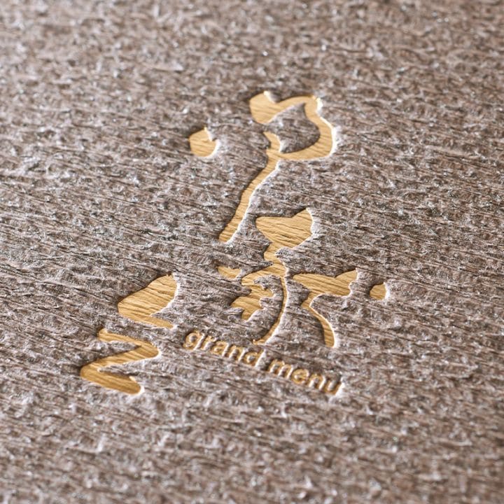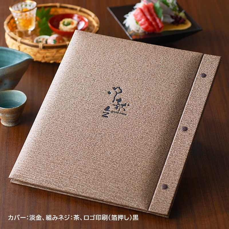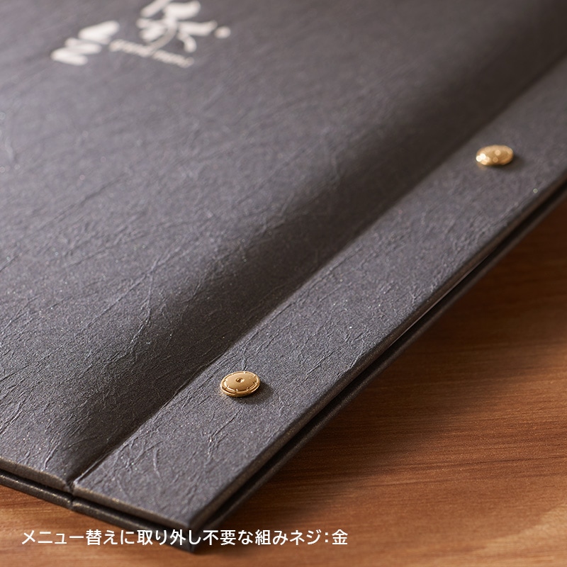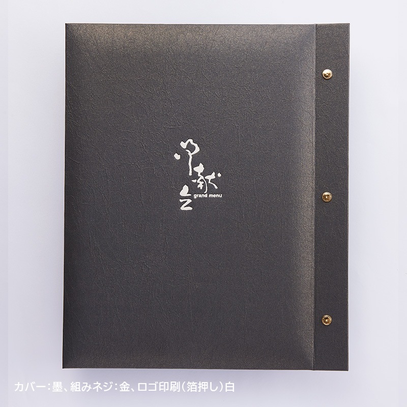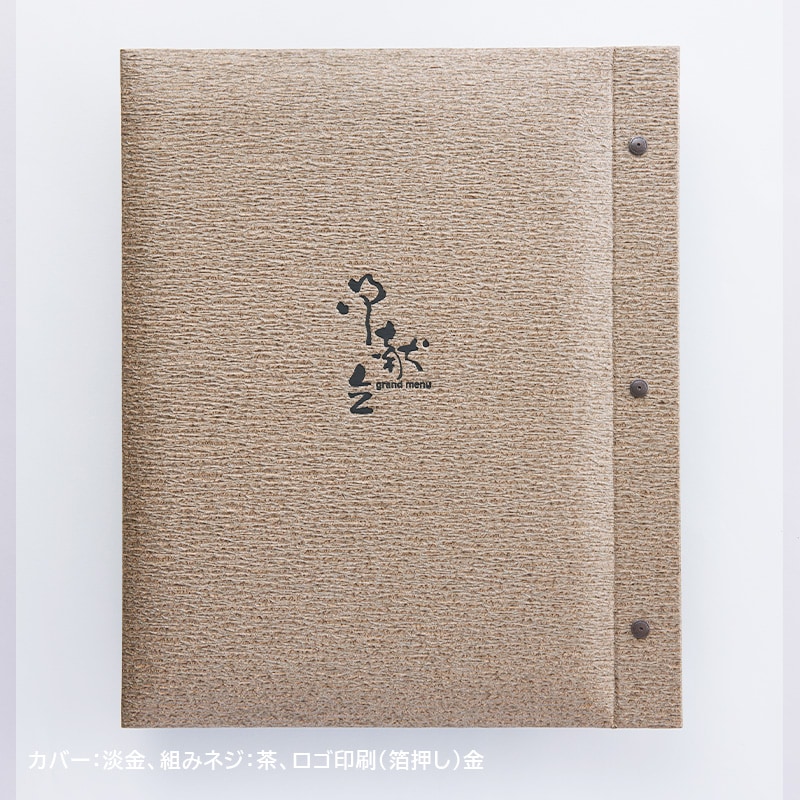 「檀紙」を再現した光沢のある和紙。ふっくらとした立体感とダイナミックなサイズ感が重厚な印象を与え、高級店にもふさわしいメニューブックです。