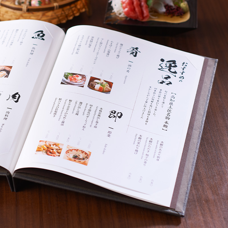 ロゴ印刷(カラー印刷 題箋貼り) メニューブックにお店のロゴを入れる「オリジナルロゴ印刷」です。※発送目安:レイアウトご承認後約8営業日