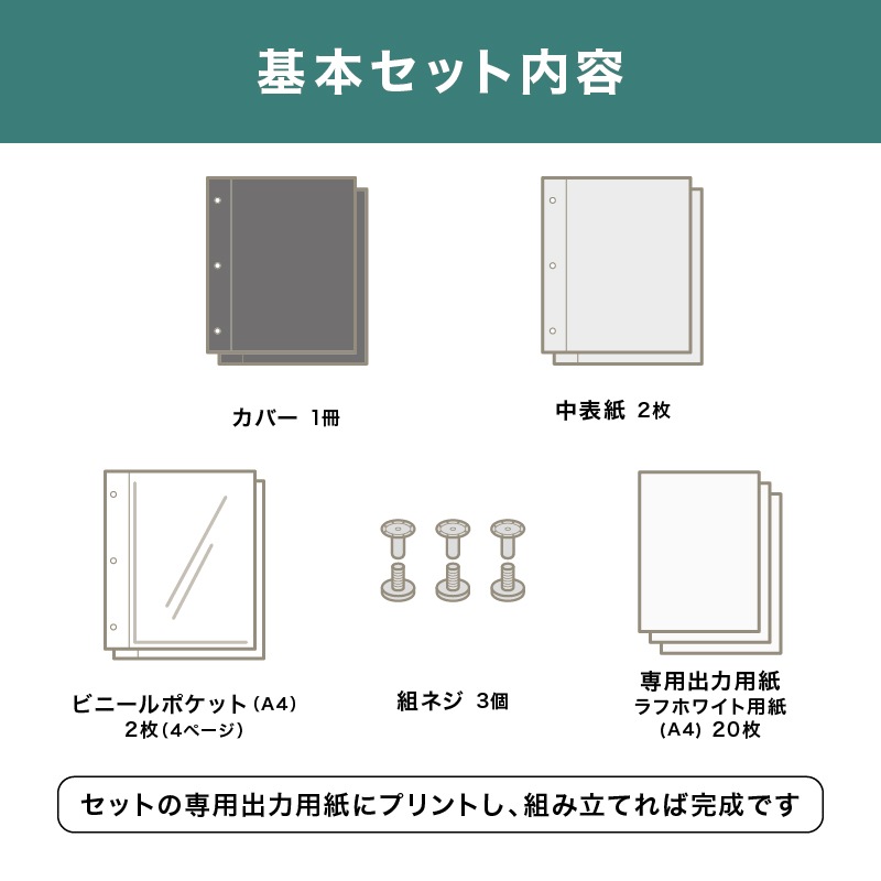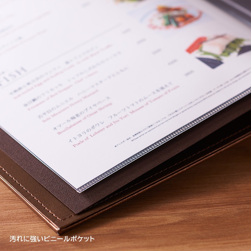 高級感漂う「台紙タイプ」と、機能性を兼ね備えた「ビニールポケットタイプ」をご用意。これまでにはなかった大型サイズで、A4用紙をご利用いただけます。