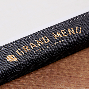 - ※レザー調メニューブックへの印刷はシボ目部分にインクが乗りにくいためロゴの再現性がやや劣ります。