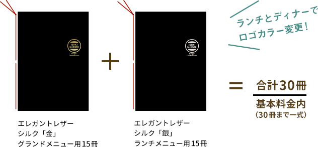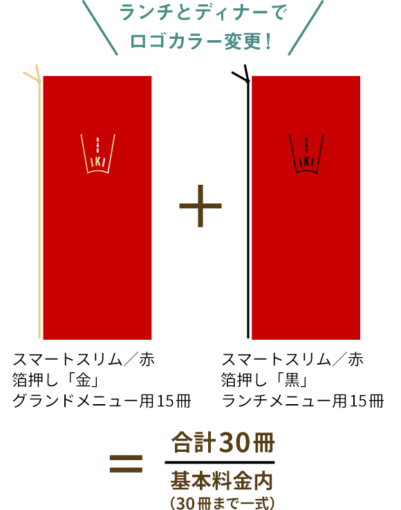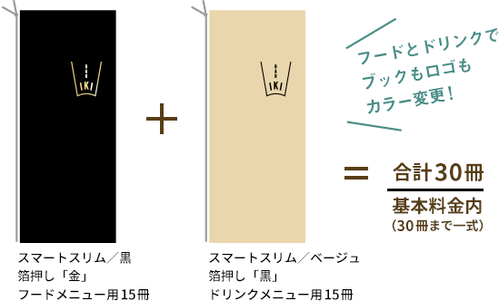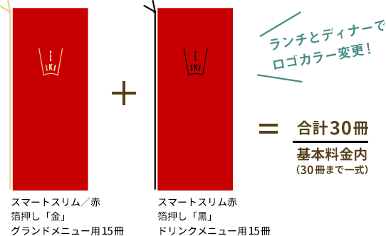 同時印刷の場合、同じ箔版を利用して、ロゴやメニューブックのカラーチェンジも基本料金で承っております。