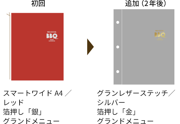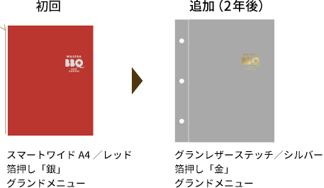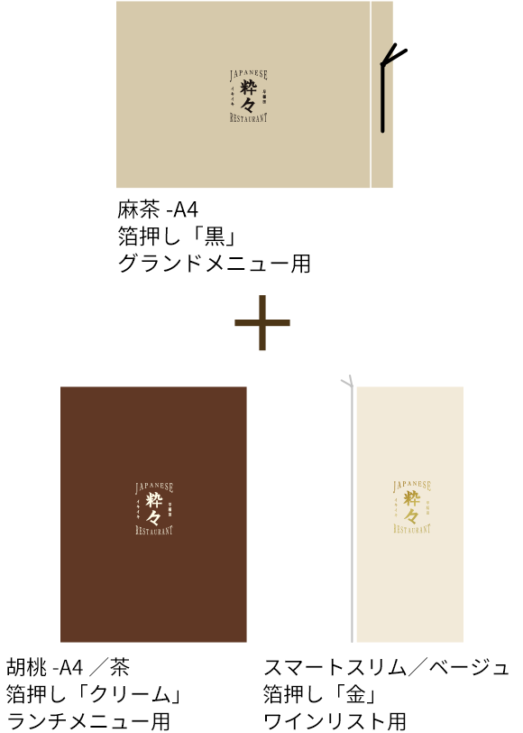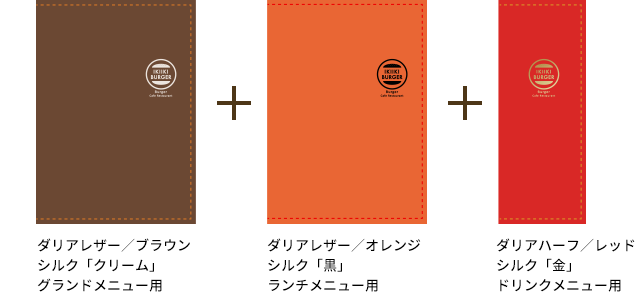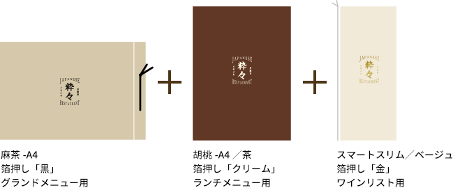 同じ箔版を利用して、他のメニューブックにもお得にロゴ印刷をすることができます。