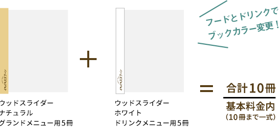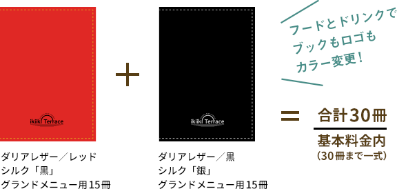 同時印刷の場合、同じデータを利用して、メニューブックのカラーチェンジも基本料金で承っております。