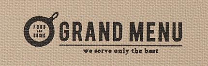 箔押し印刷の特性上、ロゴに広範囲のベタ(塗りつぶし)や細かい装飾・小さな文字がある場合、凹凸のある生地のメニューブックに箔押しする場合は潰れたりかすれたりする可能性がございます。