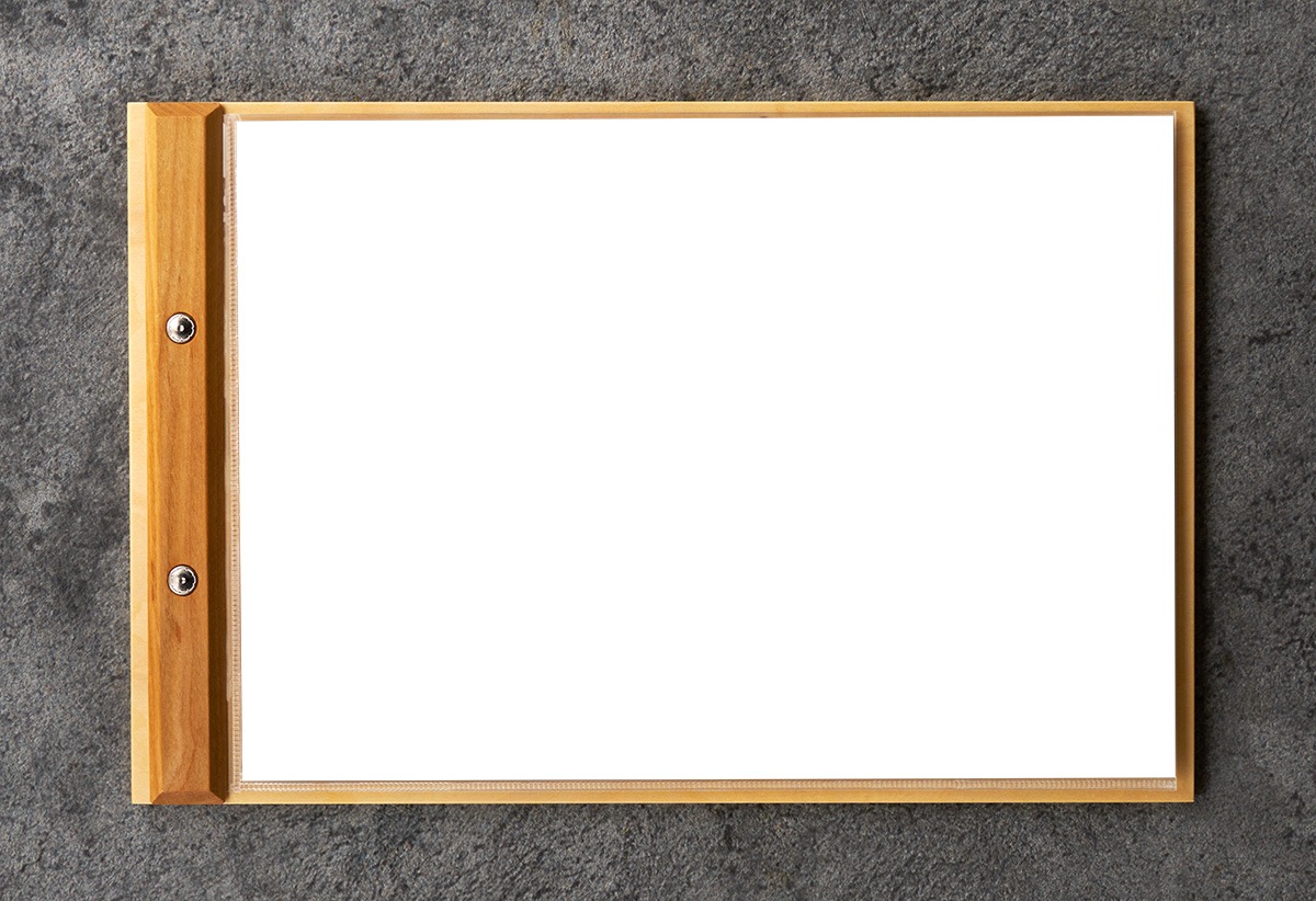 一部の商品はメニューブックにセットしたときに見えなくなる部分がございます。見えなくなる部分や各種寸法をご確認ください。